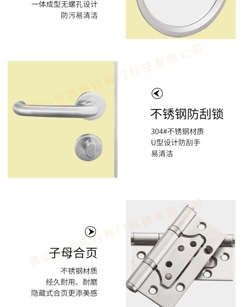 產品簡介:chnsige西格特種門,專業生產醫院門,醫院診室門,醫院辦公室門,醫院衛生間門,木質醫院門,鋼質醫院門,多鐘款式、顏色,尺寸可定制。