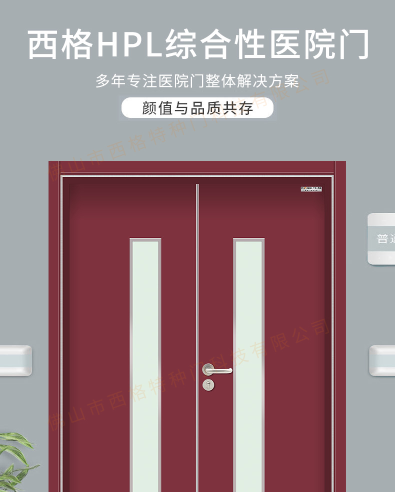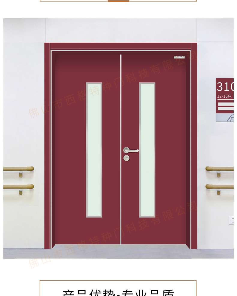產品簡介:chnsige西格特種門,專業生產醫院門,醫院診室門,醫院辦公室門,醫院衛生間門,木質醫院門,鋼質醫院門,多鐘款式、顏色,尺寸可定制。